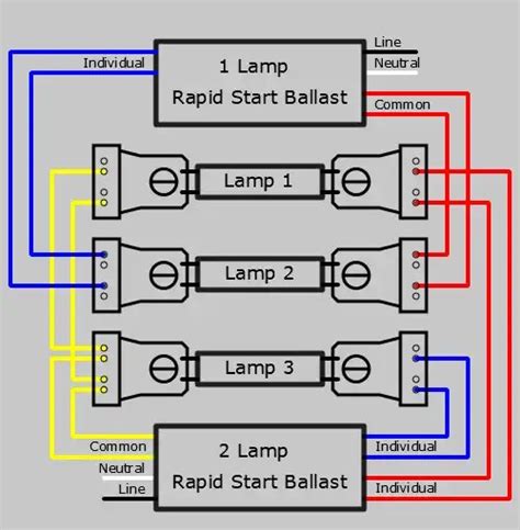 The 1 lamp ballast usually connects to the middle lamp, the 2 lamp. The 3 lamp 2 ballast wiring diagram, tips, and frequently asked questions are all readily available here. Use 18 awg (1.0 mm2) solid copper wire.